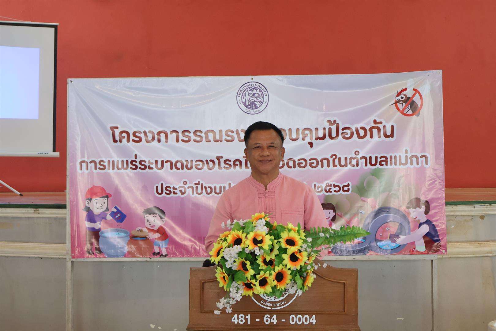 วันอังคารที่ 26 สิงหาคม พ.ศ. 2568 เวลา 09.00 น. นายภูวเดช เงินเย็น นายกเทศมนตรีตำบลแม่กา เป็นประธานกล่าวเปิดโครงการรณรงค์ควบคุมป้องกันการแพร่ระบาดของไข้เลือดออกในตำบลแม่กา โดยนายถวิล วงศ์กันทิยะ ผอ.รพ.สต.แม่กาเป็นผู้กล่าวรายงานโครงการดังกล่าวฯ ณ อาคารโดมอเนกประสงค์เทศบาลตำบลแม่กา อำเภอเมืองพะเยา จังหวัดพะเยา โดยมีกลุ่มเป้าหมายคือ อสม.ตำบลแม่กา เจ้าหน้าที่งานควบคุมป้องกันโรค รพ.สต.แม่กา และ รพ.สต.บ้านห้วยเคียน วิทยากรบรรยายให้ความรู้ได้รับเกียรติจากโรงพยาบาลพะเยา ทั้งนี้คณะผู้บริหารได้ร่วมลงนามบันทึกข้อตกลงความร่วมมือด้านสาธารณสุขในการป้องกันและควบคุมโรคไข้เลือดออกตำบลแม่กา และสนับสนุนทรายอะเบทและสเปย์ฉีดกันยุงให้กับตัวแทน อสม. ม.1-18 เพื่อใช้ในการควบคุมป้องโรคไข้เลือดออกในตำบลแม่กา