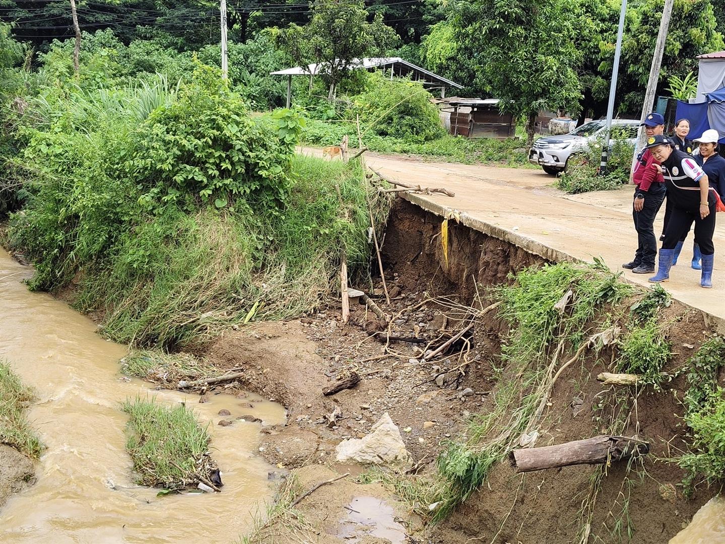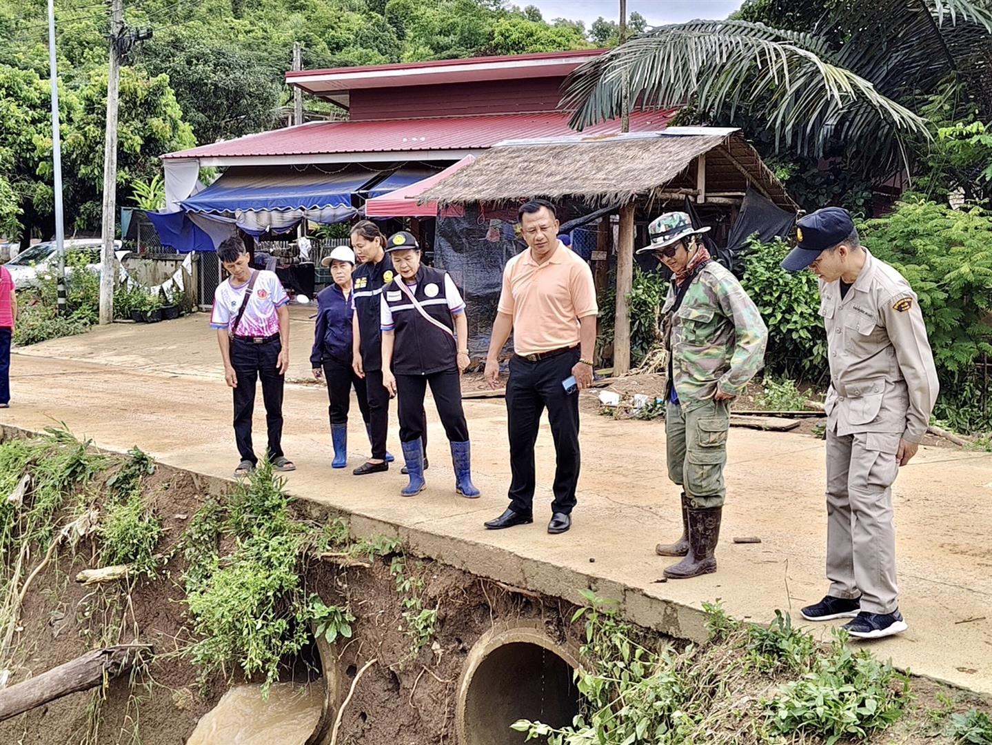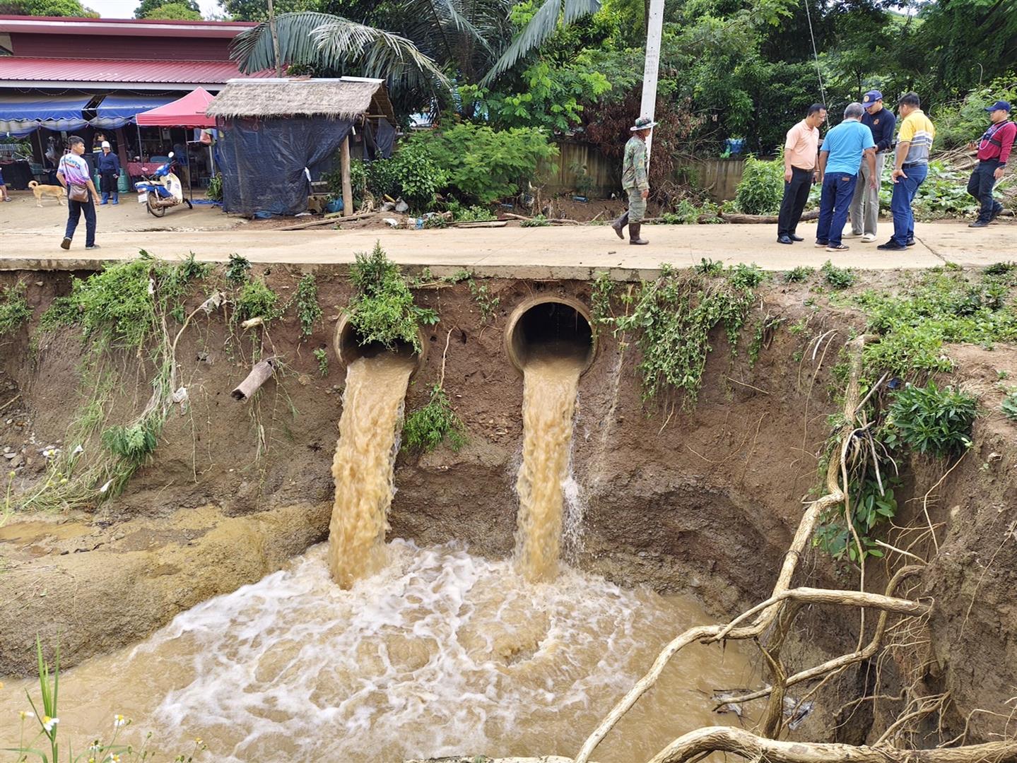 วันพฤหัสบดีที่ 28 สิงหาคม 2568 เวลา 09.00 น. นายภูวเดช เงินเย็น นายกเทศมนตรีตำบลแม่กา ลงพื้นที่ร่วมกับ นายธีระพันธ์ วงค์วิลาศ ปลัดอำเภอผู้ประสานงานประจำตำบลแม่กา, นายศักดิ์ชาย ฟูแสง ส.อบจ.เขต 5 อำเภอเมืองพะเยา , สารวัตรกำนันตำบลแม่กา ,นางศรีวรรณ เขื่อนคำ และนางราณี วิสิทธิศักดิ์ ส.ท.ตำบลแม่กา เขต 2 , นายศุภชัย แซ่ลิ้ว ผู้ใหญ่บ้าน หมู่ที่ 18 ตำบลแม่กา นายพีรวิท แซ่ลิ้ว ผู้ช่วย ส.ส.พะเยา เขต 1 , เจ้าหน้าที่กองช่าง และเจ้าหน้าที่งานป้องกันฯ ลงพื้นที่ตรวจสอบข้อเท็จจริงและให้ความช่วยเหลือ เหตุการณ์น้ำป่าไหลหลากในพื้นที่บ้านแม่ต๋ำน้อย หมู่ที่ 18 ตำบลแม่กา เมื่อวันที่ 27 สิงหาคม 2568 เวลาประมาณ 17.20น. พื้นที่บ้านเด่นขาม ซึ่งมีราษฎรอาศัยอยู่ประมาณ 10 ครัวเรือน ราษฎร 20 ราย และสนับสนุนแก่ผู้เปราะบางโดยมอบถุงยังชีพ จำนวน 5 ถุง พร้อมน้ำดื่ม 20 แพ็ค ส่วนบริเวณบ้านแม่ต๋ำน้อย (หน้าร้านค้า) ท่อลอดขนาด 1.20 เมตร จำนวน 2 แถว ชำรุดดินพังเสียหาย