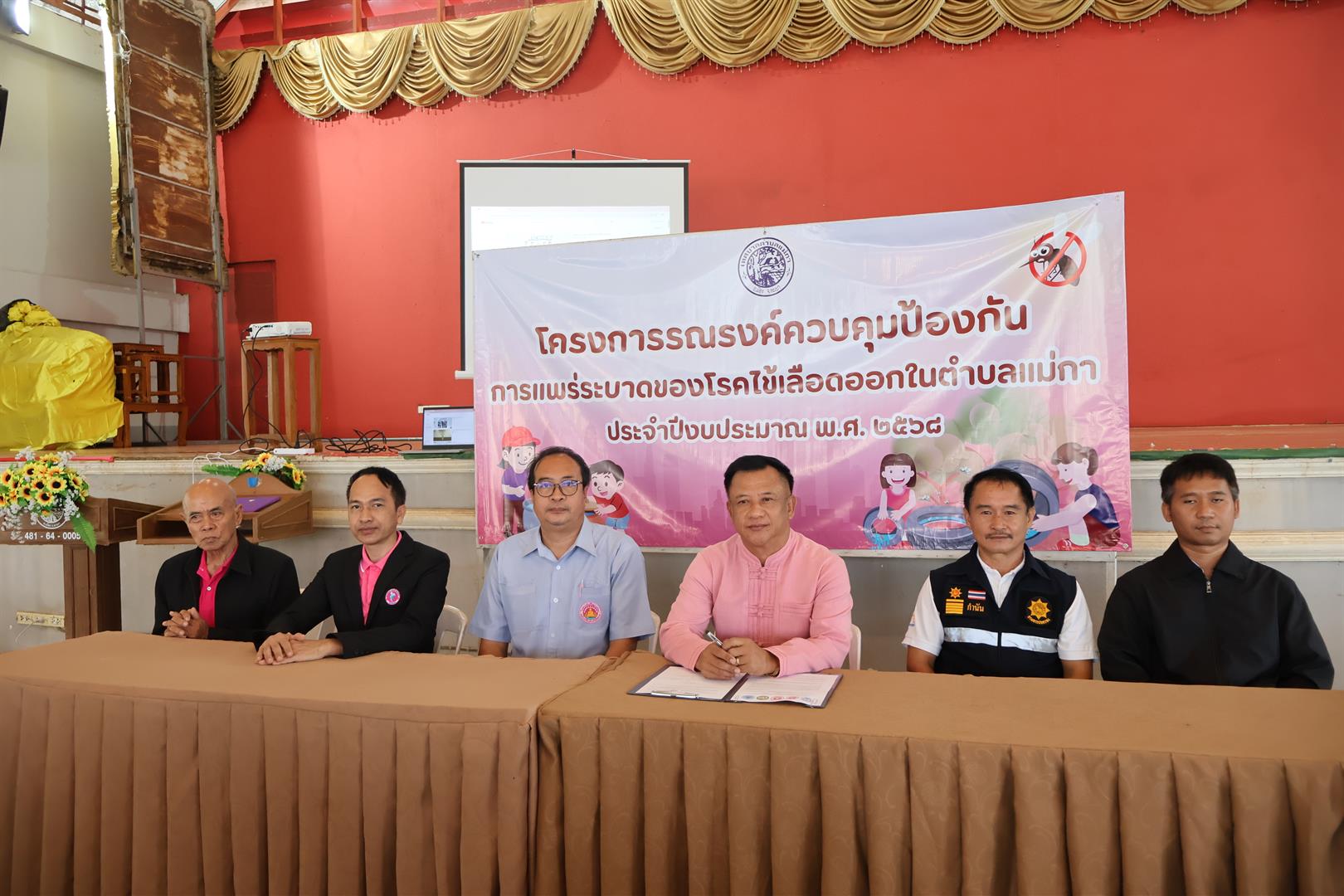 วันอังคารที่ 26 สิงหาคม พ.ศ. 2568 เวลา 09.00 น. นายภูวเดช เงินเย็น นายกเทศมนตรีตำบลแม่กา เป็นประธานกล่าวเปิดโครงการรณรงค์ควบคุมป้องกันการแพร่ระบาดของไข้เลือดออกในตำบลแม่กา โดยนายถวิล วงศ์กันทิยะ ผอ.รพ.สต.แม่กาเป็นผู้กล่าวรายงานโครงการดังกล่าวฯ ณ อาคารโดมอเนกประสงค์เทศบาลตำบลแม่กา อำเภอเมืองพะเยา จังหวัดพะเยา โดยมีกลุ่มเป้าหมายคือ อสม.ตำบลแม่กา เจ้าหน้าที่งานควบคุมป้องกันโรค รพ.สต.แม่กา และ รพ.สต.บ้านห้วยเคียน วิทยากรบรรยายให้ความรู้ได้รับเกียรติจากโรงพยาบาลพะเยา ทั้งนี้คณะผู้บริหารได้ร่วมลงนามบันทึกข้อตกลงความร่วมมือด้านสาธารณสุขในการป้องกันและควบคุมโรคไข้เลือดออกตำบลแม่กา และสนับสนุนทรายอะเบทและสเปย์ฉีดกันยุงให้กับตัวแทน อสม. ม.1-18 เพื่อใช้ในการควบคุมป้องโรคไข้เลือดออกในตำบลแม่กา