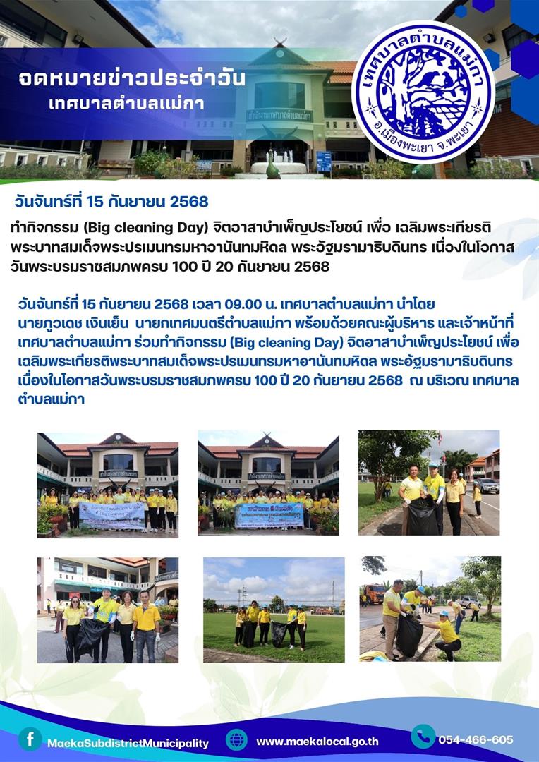 นายภูวเดช เงินเย็น นายกเทศมนตรีตำบลแม่กา พร้อมด้วยคณะผู้บริหาร และเจ้าหน้าที่เทศบาลตำบลแม่กา ร่วมทำกิจกรรม (Big cleaning Day)