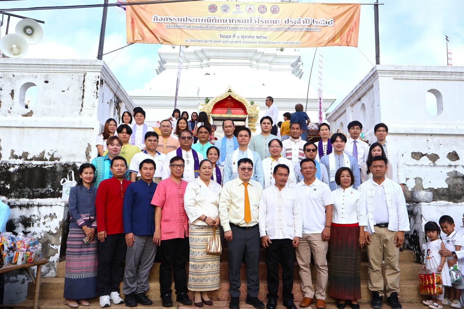 วันพุธที่ 8 ตุลาคม 2568 เทศบาลตำบลแม่กา นำโดย นายภูวเดช เงินเย็น นายกเทศมนตรีตำบลแม่กา พร้อมด้วยคณะผู้บริหาร สมาชิกสภา กำนัน ผู้ใหญ่บ้าน หัวหน้าส่วนราชการและเจ้าหน้าที่เทศบาลตำบลแม่กา ร่วมกิจกรรมประเพณีตักบาตรเทโวโรหณะ ประจำปี 2568 และเสริมสร้างความเข้มแข็งด้านคุณธรรมและธรรมาภิบาลในหน่วยงาน โดย มหาวิทยาลัยพะเยา เพื่อให้เกิดการมีส่วนร่วมในการสืบสานและส่งเสริมวัฒนธรรมประเพณีการตักบาตรเทโวโรหณะและเผยแพร่ความเป็นมาของประเพณีตานต้อด อันเป็นเอกลักษณ์ทางวัฒนธรรมของจังหวัดพะเยา ณ วัดป่าพระอุบาลี และวัดดงพระเจ้า ตำบลแม่กา อำเภอเมืองพะเยา จังหวัดพะเยา